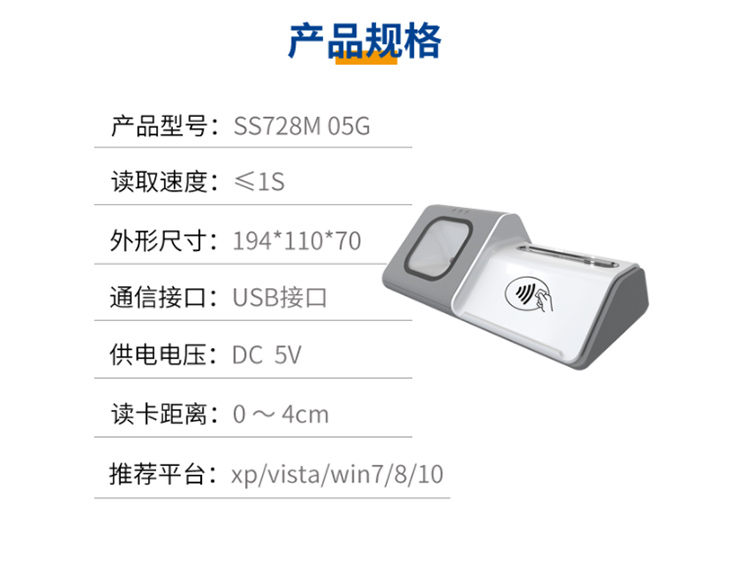 (*由于產品升級或其他原因,神思SS728-M05G多合一讀卡終端產品實際參數有可能變更,以實際產品為準。本文中的所有陳述、信息和建議也不構成任何明示或暗示的擔保)