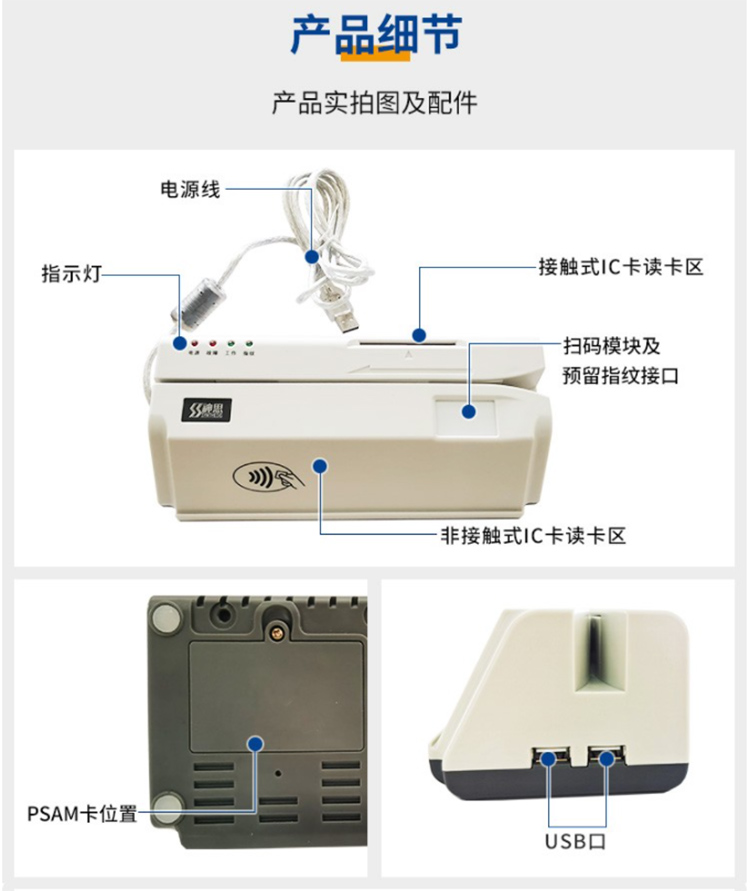 神思SS728-M05P多合一讀卡終端可以讀取身份證信息,社保卡信息,醫(yī)保卡信息,ic卡信息,就診卡